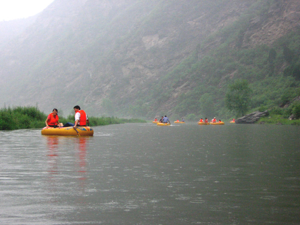 永定河峽谷從官廳水庫攔河大壩順流而下,山高谷深,峰巒疊嶂,俗稱“小三峽”。有宋代楊家將七郎八虎戰(zhàn)幽州的古戰(zhàn)場,有舊莊窩林區(qū)的奇山異石,有“一線天”、石橋、木橋、吊索橋,有亞洲第一樓等景觀。豐沙鐵路、官沿公路在永定河峽谷穿山跨河,隧道有100多座,橋梁有40多座。永定河峽谷漂流,號稱“萬米漂流”。全程約10公里,時(shí)速10—15公里,落差約300米。峽谷漂流,別開生面,有驚無險(xiǎn),深受廣大游客歡迎。