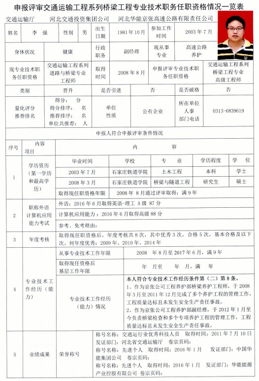 京張公司2017年度專業(yè)技術(shù)職稱申報公示(李強(qiáng))
